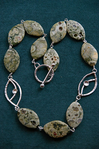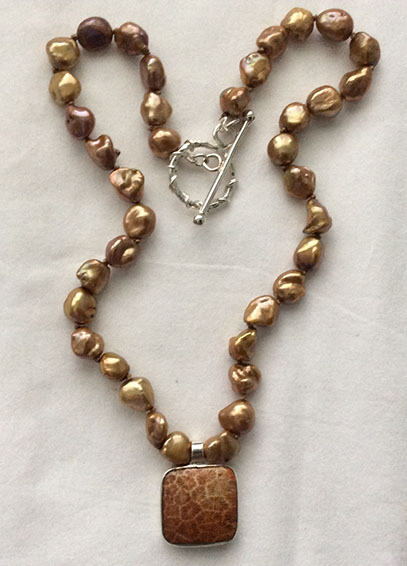 Silver & Fossil Coral & Freshwater Pearl Necklace