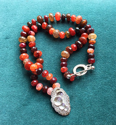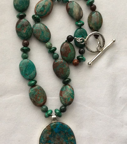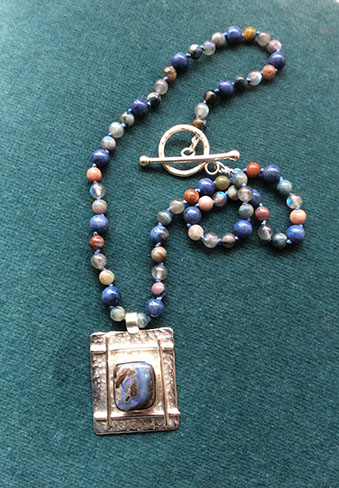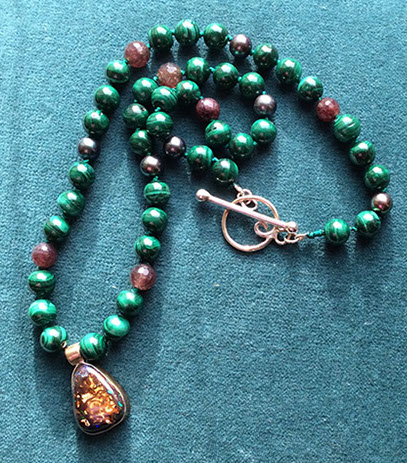 Silver, Boulder Opal, Malachite & Smoky Quartz Necklace