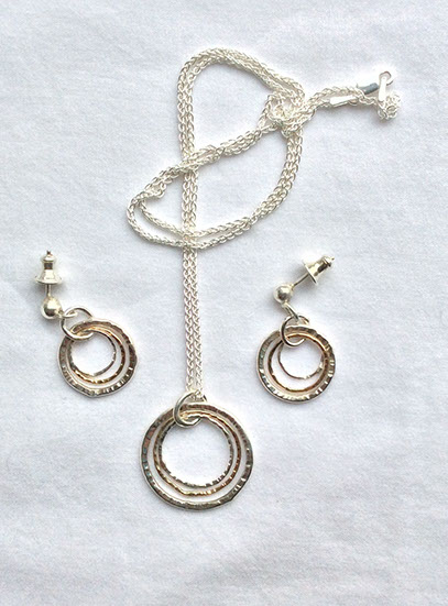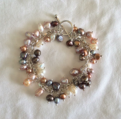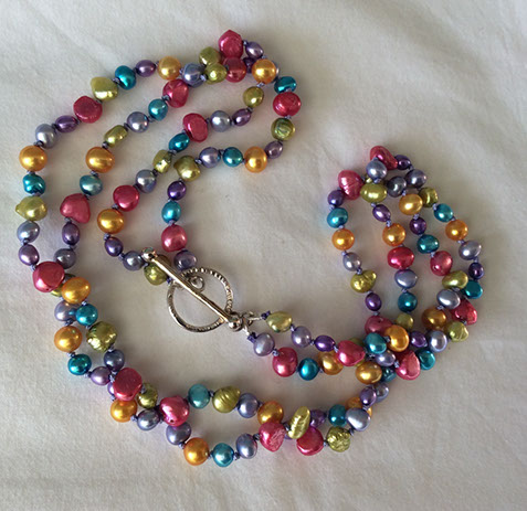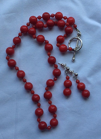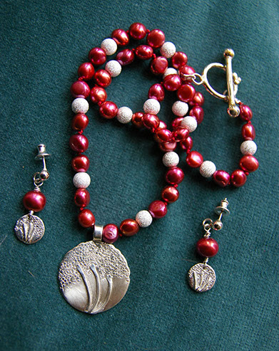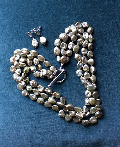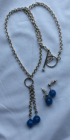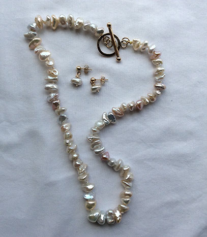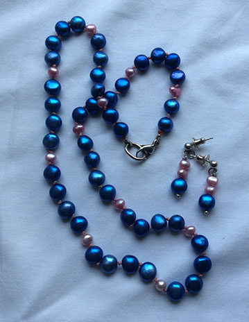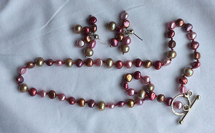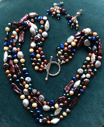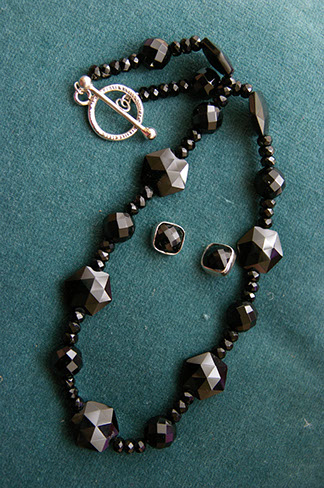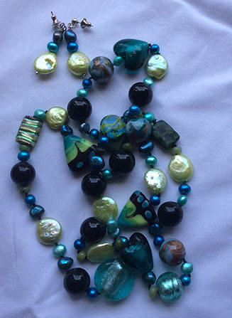 Silver, Pearl, Onyx & Glass Bead Necklace & Earrings
