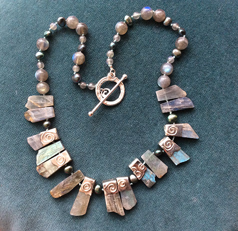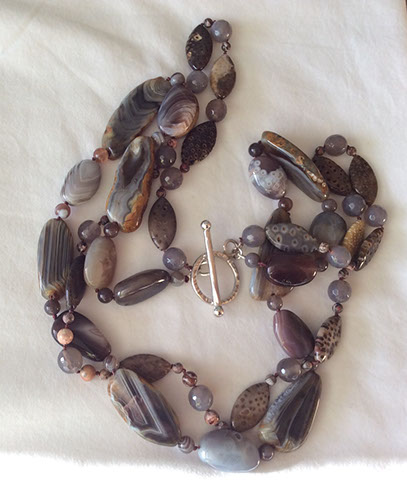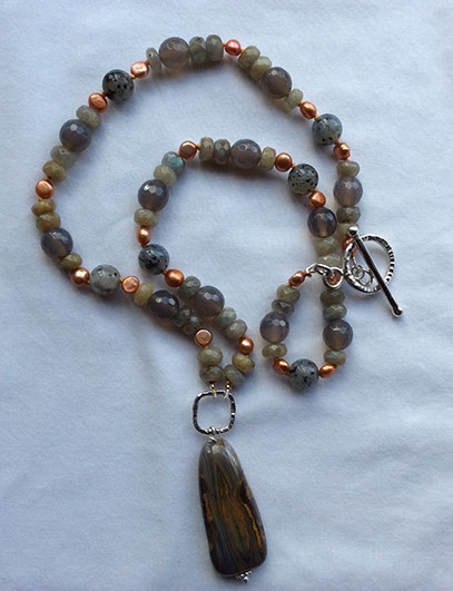 Silver Botswana Agate Labradorite & Pearl Necklace