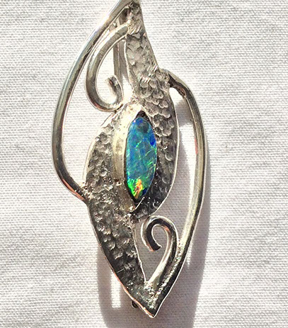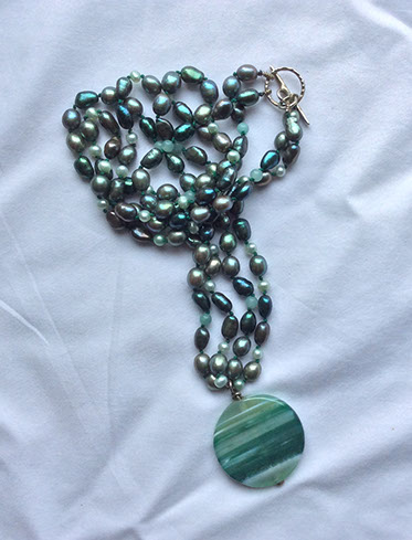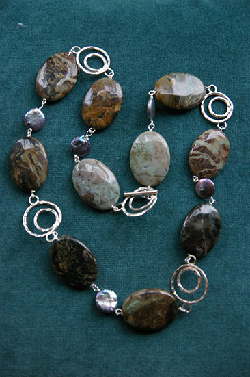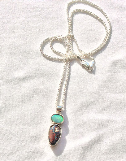 Silver & Boulder Opal, Pearl & Green Agate Necklace