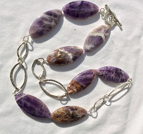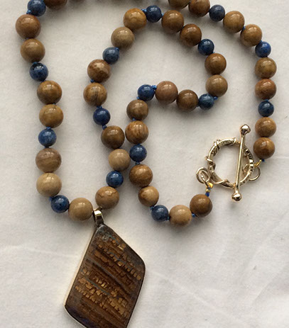 Gold Boulder Opal Petrified Wood & Dumortieirite Necklace