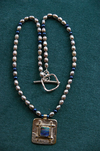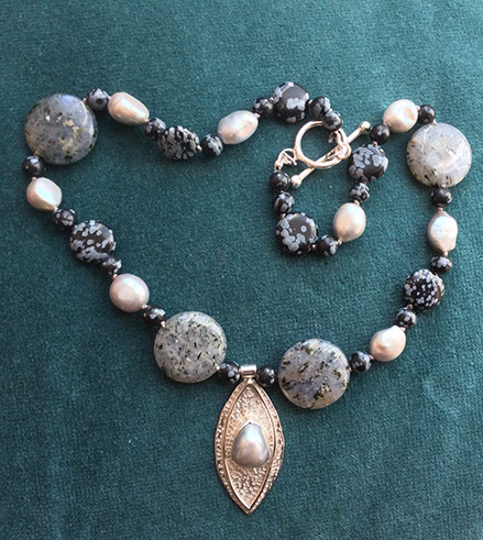Silver, Pearl, Snowflake Obsidian & Lodalite Necklace