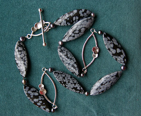 Silver, Snowflake Obsidian & Pearl Necklace & Earrings
