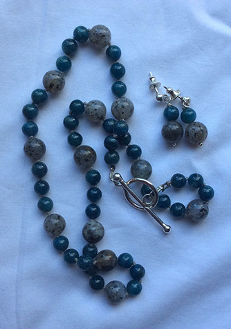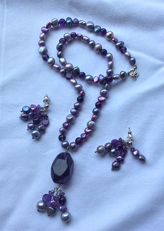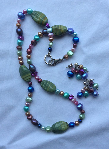 Silver, Pearl, Onyx & Glass Bead Necklace & Earrings