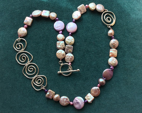 Silver & Fossil Coral & Freshwater Pearl Necklace