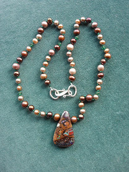 Silver & Boulder Opal, Pearl & Green Agate Necklace